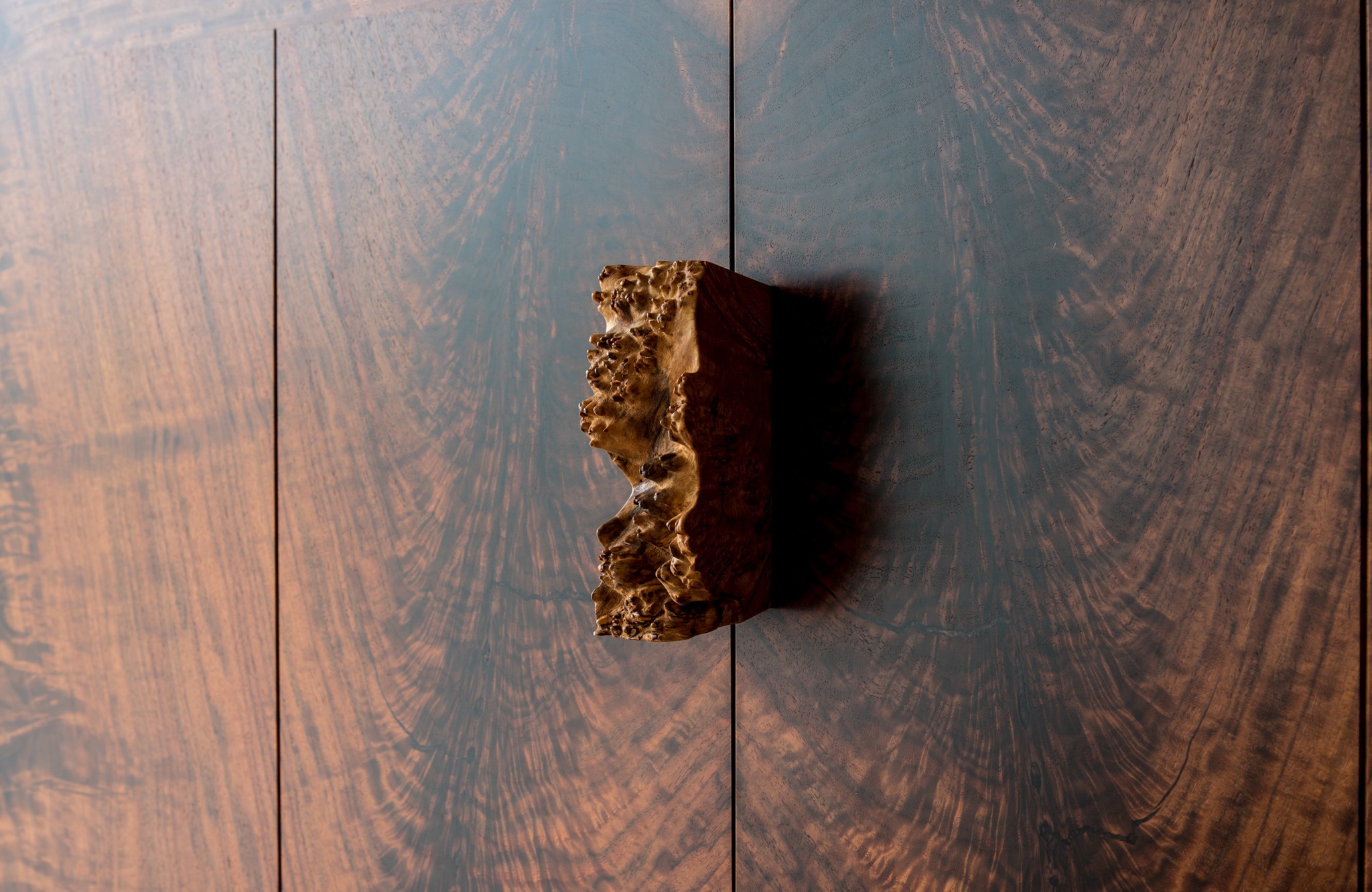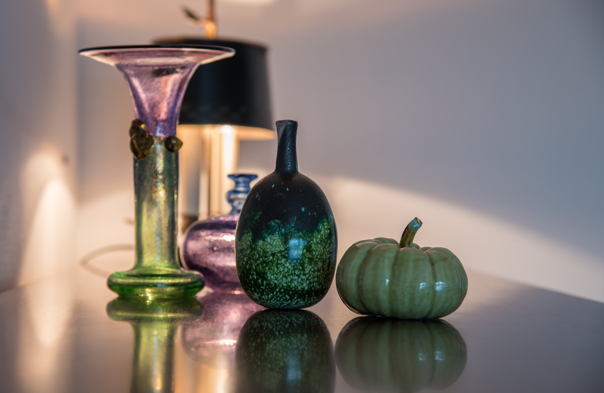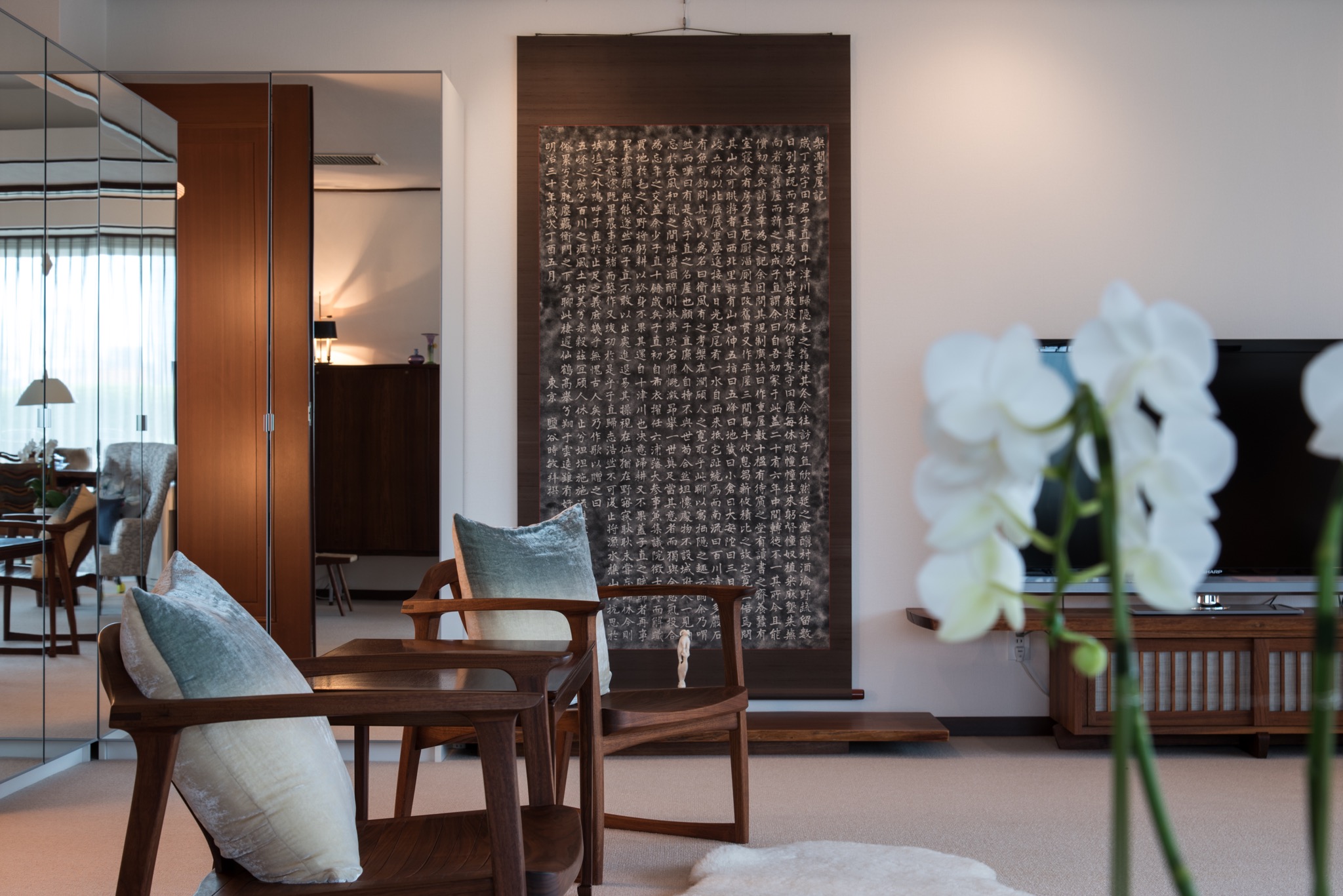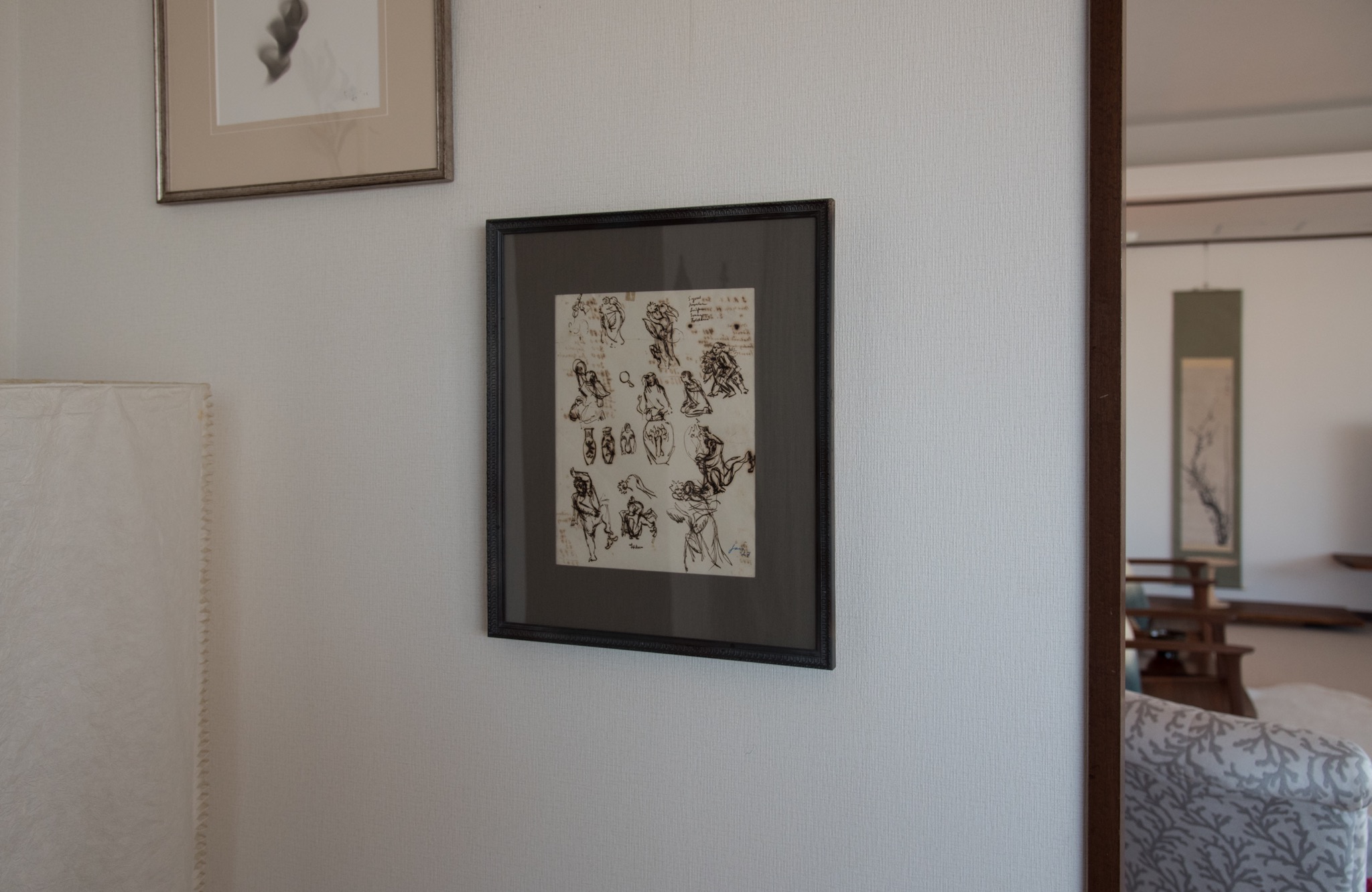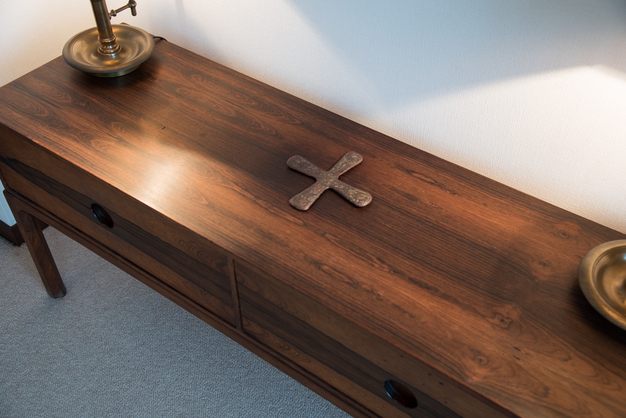 東京都港区南青山のヴィンテージマンション。オーナーは60歳代の女性。ゆったりとした空間に様々な調度品やコレクションが配置されています。かつて学生を含め一般人を対象に、日本の博物館法に定められた学芸員資格を取るための講座が早稲田大学で開催されたことがあったそうで、人生のチャレンジとして受講されたとのこと。その授業では、美術史や博物館史、経営論、教育論はもとより、美術品の梱包、展示、保存、修復に至るまで教えられ、実習を交えて学ばれたそうです。そのような経験をお持ちのオーナーが集められたコレクションは、季節や節句ごとに飾り替えられ、物の持つ特徴や、時の流れを楽しまれています。リビングに置かれたジョージ・ナカシマによるキャビネットの扉板は見事な木目文様の現れたアメリカンブラックウォールナット材が用いられており、これは存命だった頃のナカシマ自身が米国ニューホープの工房で所有していた「材」だそうで、ご縁があり手元にやってきたそうです。ナカシマの天板には裸婦の作家として知られる明治生まれの洋画家、原精一による油彩作品が飾られ、16世紀頃に焼かれたというデルフト窯の器が鎮座していました。イタリアポストモダンを代表するマリオ・ボッタのテーブルランプや、建築家、吉村順三のフロアランプ、イギリスWade社のソファなど、古今東西広い世界から選りすぐりの「品々」が集められています。ダイニングルームに置かれたアクセル・キアスゴー工房のチェストの上の十字架は、マリ共和国で使われていた嫁入りのためのお金で、何枚も束にして紐で括り、嫁ぐ娘の持参金としたものとのことで、パリを歩いている際に通りかかった骨董屋で見つけられたそうです。当店からは、フィン・ユールのファイヤープレイスチェアや、オーレ・ヴァンシャーのテーブルや椅子、ヤコブ・E・バンの蓋つきガラスボウル、ハンス・ウェグナーのキャビネット、ヤイス・ニールセンの素描、ロロ・ピアーナのクッションなどをお納めさせていただきました。